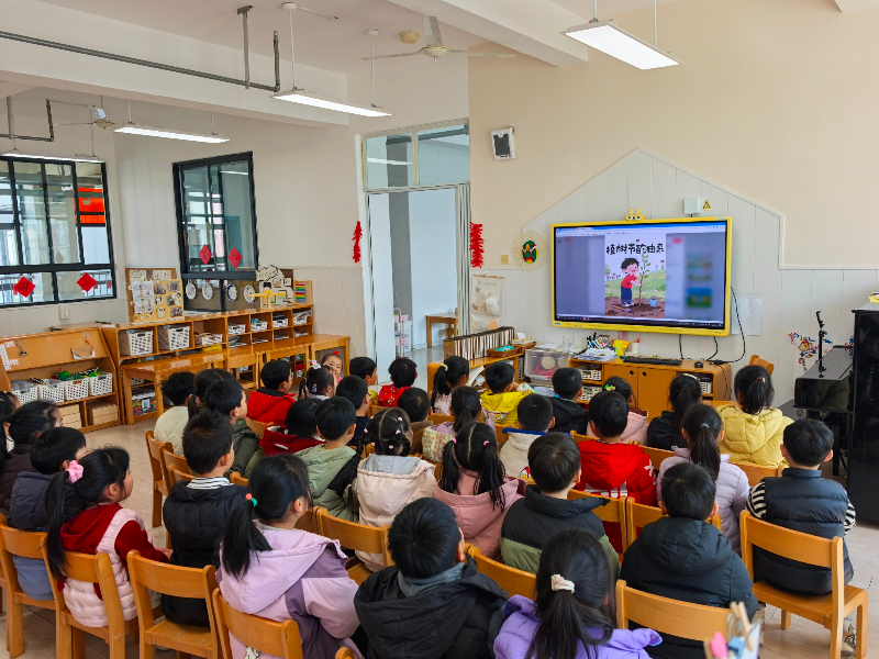 活动伊始,老师带着孩子们走进植树节的小课堂。通过生动的图片、趣味的短视频,孩子们清楚地知道了3 月 12 日是我国的植树节,也了解到设立植树节的初衷 —— 提醒大家爱护树木、多种树,让我们的生活环境更美丽、空气更清新。